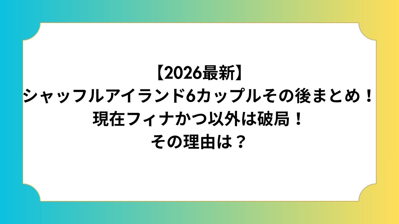 【2026最新】シャッフルアイランド6カップルその後まとめ!現在フィナかつ以外は破局!その理由は?