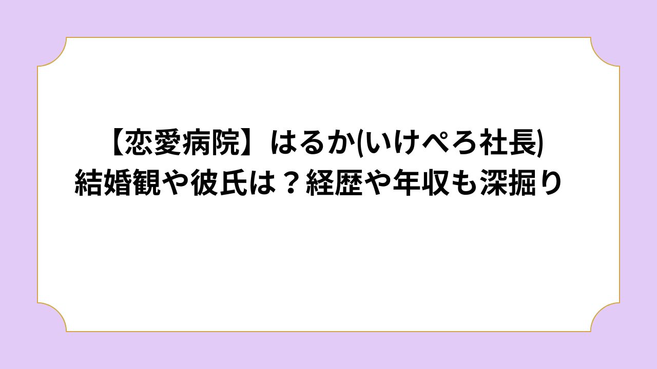 本記事では、はるか(いけぺろ社長)さんの結婚観や彼氏、そして気になる経歴や年収についてまとめました。