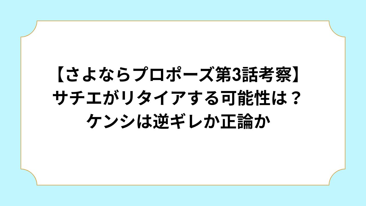 本記事ではさよならプロポーズに出演しているサチエさんとケンシさんカップルがリタイアするのか、ケンシさんの発言の真意について考察しました。