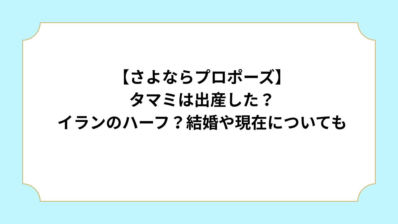 【さよならプロポーズ】タマミは出産した?イランのハーフ?結婚や現在についても
