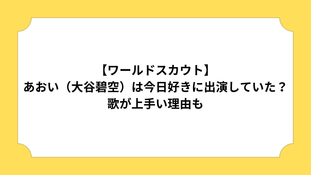 当記事ではワールドスカウトで活躍しているあおい(大谷碧空)さんの「今日好き」出演の噂や、歌が上手い理由、そして年齢や事務所などのプロフィールについて紹介しました。